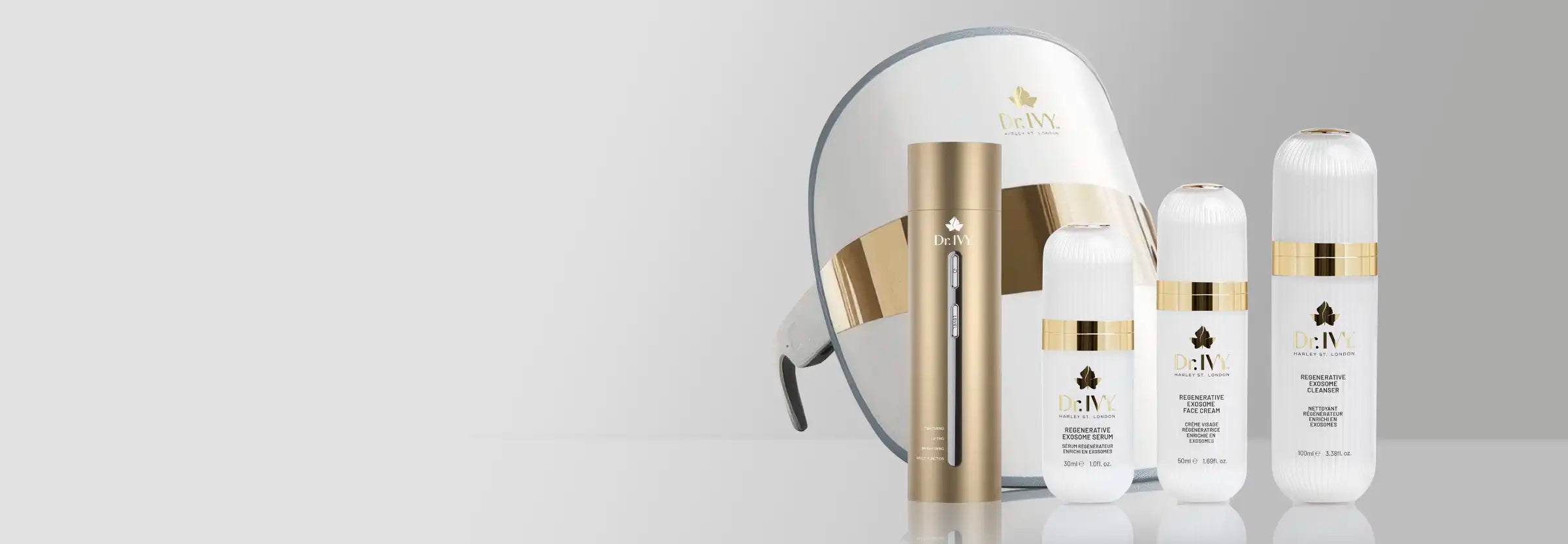 Dr. Ivy Skincare bridges the gap between invasive clinic treatments and everyday skincare with a revolutionary at-home system. Drawing on her expertise in regenerative medicine, Dr. Ivy has created a scientifically advanced range featuring exosome-based serums and complementary light therapy devices – delivering powerful, long-lasting anti-aging results safely and luxuriously at home.