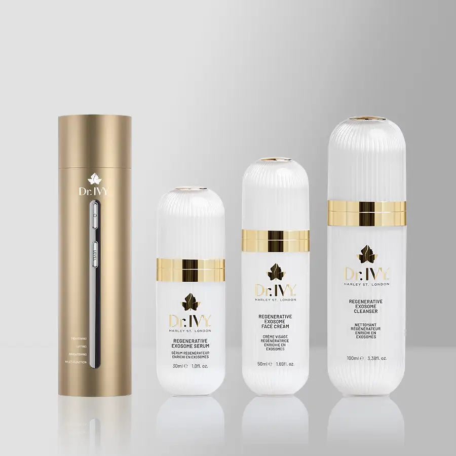 Start with a Dr. Ivy Exosome Cleanser to remove makeup, sunscreen and impurities.